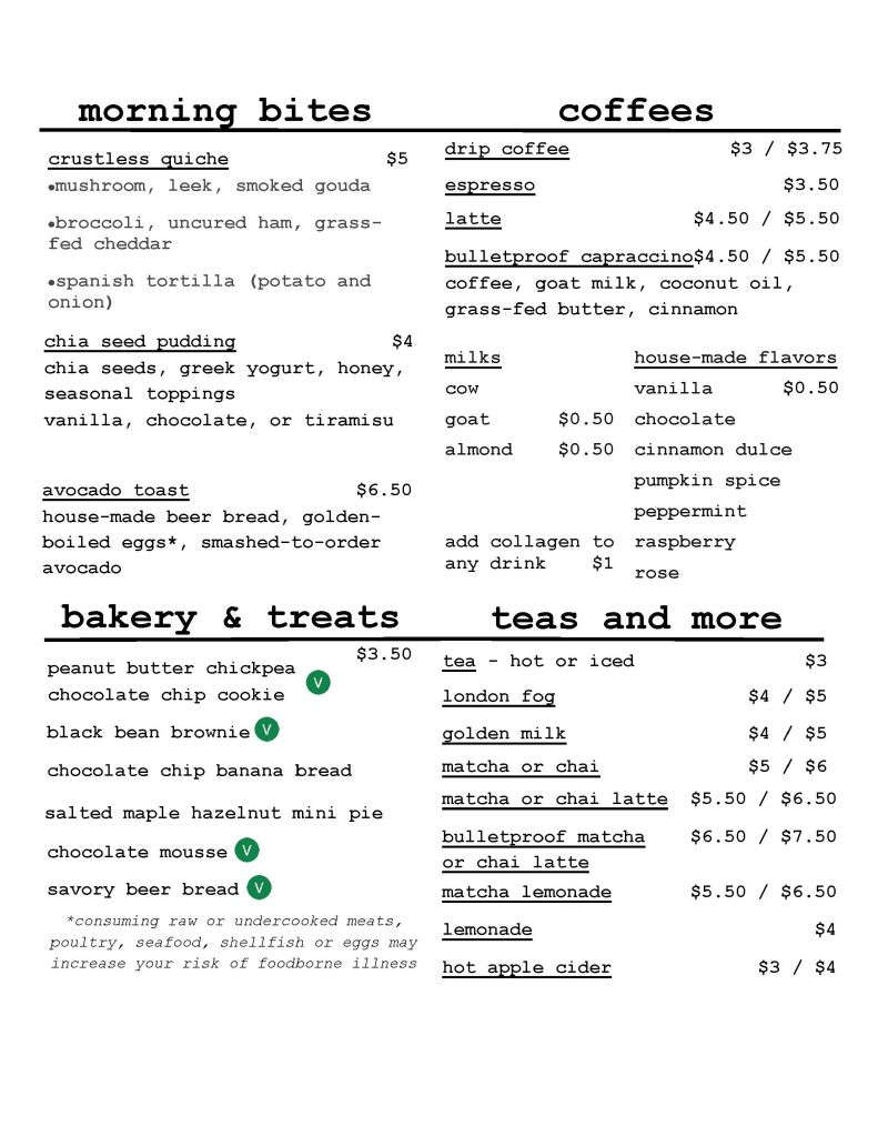 sample menu